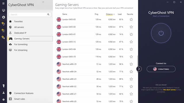 在美国和欧洲设有服务器。他们在 50 个国家/地区拥有 加速器 服务器。